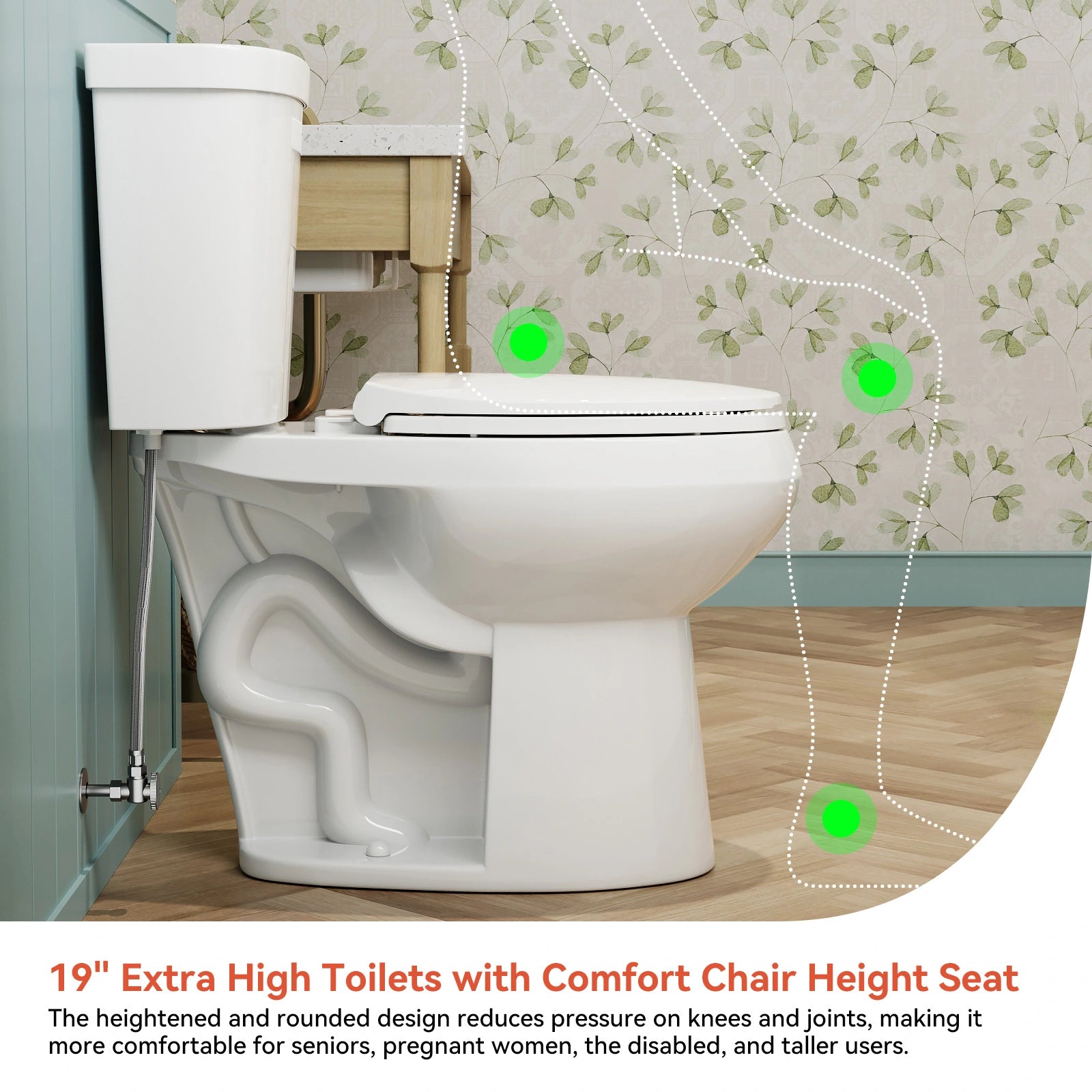 Designed with a 19-inch seat height, this extra-tall toilet offers enhanced comfort and accessibility. Its elevated design reduces strain on the knees and joints, making sitting and standing easier—ideal for seniors, taller individuals, pregnant women, and those with mobility challenges.