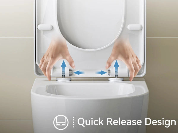 Quick-Release design allows for effortless removal and replacement, simply press the thumbs of both hands gently to the sides to remove the toilet cover.